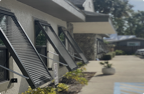 Custom-built shutters designed for Florida and debris protection- installed by the same team that builds them.